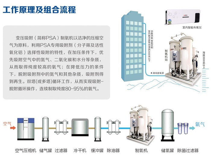 用途:医院和大型富氧工程氧气站 产氧规格:5-100m?/h 使用功率6.3KW-200KW 制氧主机:优选捷克(OxyWise)原装进